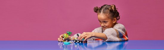 De hoogwaardige, duurzame LEGO stenen vormen samen een rijdende speelgoedquad met afneembare aanhangwagen, waarmee het reddingsteam voor de dieren kan zorgen. Dit speelgoed bevat ook een coole surfplank voor spannende verhalen. Ben je op zoek naar speelgoed om kinderen onderweg te vermaken? Deze compacte auto heeft de ideale afmetingen voor in een tas.