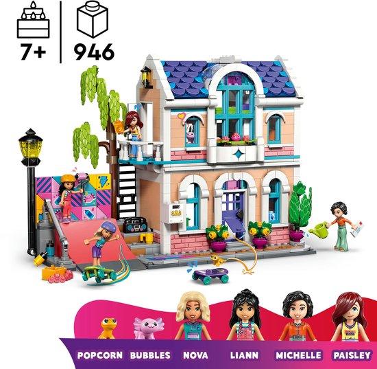 AFMETINGEN – een 946-delige set met een speelgoedhuis van ca. 20 cm hoog, 29 cm breed en 12 cm diep POPPENHUIS BOUWPAKKET VOOR KINDEREN – nodig meisjes en jongens uit om te spelen met LEGO Friends Lianns huis speelgoed voor kinderen vanaf 7 jaar, inclusief 4 poppetjes en 2 speelgoed dieren figuren