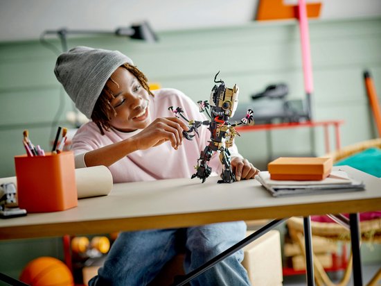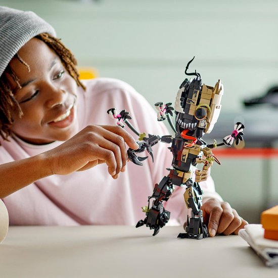 Kinderen bouwen een gedetailleerd, flexibel model van Groot en voegen vervolgens meer stenen toe om zijn uiterlijk te veranderen terwijl de gruwelijke Venom hem langzaam maar zeker overneemt. Ze kunnen hun model aanpassen met Venoms bekende lange tong, scherpe tanden, tentakels en grote witte ogen. De armen, benen, heupen en het hoofd van het model zijn beweegbaar, waardoor kinderen eindeloze fantasierijke avonturen kunnen beleven met hun Venom versie van Groot. Voor extra digitaal plezier kunnen bouwers inzoomen, modellen in 3D draaien en hun voortgang bijhouden met de leuke, intuïtieve LEGO Builder app.
