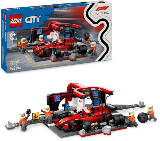 LEGO City F1 pitstop en pitcrew met Ferrari auto – 60443