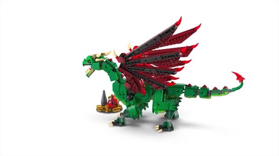 Verras je kleine tijdreiziger met deze LEGO® Creator Middeleeuwse draak (31161) speelgoedset. De drakenfiguur heeft grote, verstelbare vleugels die op en neer kunnen bewegen en kunnen worden ingevouwen en uitgeklapt, plus verstelbare enkels, tenen, nek, kaak, heupen en schouders. De set is inclusief een schatkist waarmee jongens en meisjes vanaf 9 jaar spannende actieverhalen kunnen naspelen. Fans van mythische dieren kunnen 3 verschillende dieren bouwen met dezelfde set stenen: een verstelbare draak, zeeslang of feniks. De 3 mythische wezens in deze transformerende speelgoedset zijn een geweldig verjaardagscadeau voor kinderen. LEGO Creator 3in1 sets prikkelen de fantasie met 3 verschillende bouwmodellen in elke doos, zodat kinderen kunnen bouwen, herbouwen en opnieuw bouwen. De 3-in-1 sets sluiten aan op de grootste passies van kinderen, waaronder supersnelle voertuigen, coole dieren en gedetailleerde huizen. Let op: de modellen kunnen niet tegelijkertijd worden gebouwd.