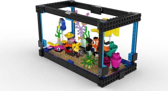 Kinderen beleven allerlei avonturen onder water met dit bouwbare LEGO Creator 3in1 Aquarium (31122). De glasloze tank bevat 5 verschillende felgekleurde vissen: een anemoonvis, Picasso doktersvis, zeilvindoktersvis, kardinaalbaars en vlaggenbaarsje, plus een miniduikboot, wat koraal en een waterplant.