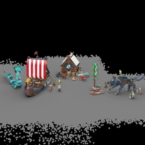 LEGO fans kunnen het Vikingschip met de Midgaardslang ombouwen tot een Vikinghuis. Het traditionele Vikingschip heeft 8 schilden, een noppenschietende katapult, een koe en 2 raven, allemaal gemaakt van LEGO stenen. Het dak van het Vikinghuis kan eraf gehaald worden, zodat kinderen ook binnen in het huis kunnen spelen. Daarnaast zijn er 4 minifiguren van Vikingen, een drakenfiguur en een grote slangenfiguur om mee te spelen. Kinderen kunnen het model zelfstandig bouwen of er samen met vriendjes of vriendinnetjes avonturen mee beleven.