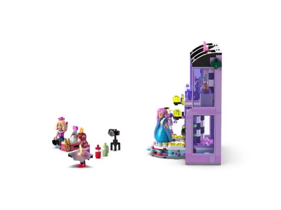 Deze set zit boordevol schattige details en wordt geleverd met 3 minipoppetjes en tal van outfits om te mixen en matchen, waaronder een rok, jas, hoeden, jeans, zonnebril en handtas. Nadat ze de kleding en accessoires hebben uitgekozen, kunnen kinderen de LEGO Friends personages op het draaiende platform plaatsen – klaar voor de grote onthulling voordat ze de catwalk opgaan. De set biedt allerlei creatieve manieren om te spelen met een kaptafel, spiegels, camera's en meer om het plezier van een echte modeshow na te bootsen.