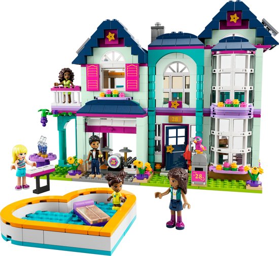 Kinderen kunnen gezellig kletsen in Andrea's slaapkamer of cupcakes maken in de keuken met het schattige kookgerei. Er is een hartvormig zwembad en een coole garagestudio met speelgoedinstrumenten waarmee Andrea en haar vriendinnen een show kunnen geven voor de hele buurt! Op het dak liggen moderne zonnepanelen en de bovenste verdieping is afneembaar, zodat kleine vingertjes overal goed bij kunnen.