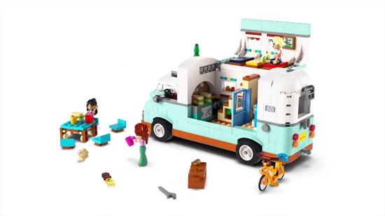 Kinderen kunnen genieten van fantasierijke rollenspellen met deze leuke voor meisjes en jongens vanaf 7 jaar. De set LEGO Friends Camperavontuur met vrienden (42663) bestaat uit een bouwbaar LEGO voertuig 3 minipoppetjes en een fret.Deze camper heeft alles wat jonge ontdekkingsreizigers nodig hebben om hun eigen kampeerverhalen te vertellen. De vrienden zitten in de cabine en zoeken de ideale kampeerplek in het bos. De camper kan open voor toegang tot de keuken en het toilet. Er zal zeker worden gegiecheld als kinderen het afval zien verdwijnen als het toilet 'doorspoelt'! Een trap leidt naar het slaapgedeelte waar een bed staat voor elk van de 3 minipoppetjes. Andere details zijn een fiets een picknicktafel met stoelen een buitendouche en kampeeraccessoires waaronder een kompas moersleutel en verrekijker.Bekijk ook ander cool kinder in het LEGO Friends universum waar nog veel meer vriendschapsverhalen te ontdekken zijn (sets apart verkrijgbaar).