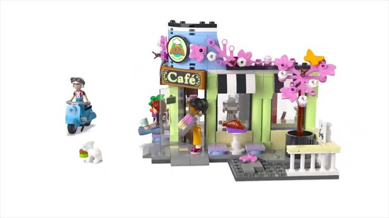Op zoek naar een leuk cadeau waarmee kinderen vanaf 6 jaar hun eigen vriendschapsverhalen kunnen bedenken? Het LEGO® Friends Heartlake City café (42618) is een speelgoedcafé in patisseriestijl met 3 LEGO Friends minipoppetjes en een hondenfiguur. Inclusief diverse accessoires voor fantasierijk speelplezier.Dit speelgoed bevordert de sociale ontwikkeling. De set vertelt het verhaal van Paisley en Olly die hun favoriete café in Heartlake City bezoeken. Beatriz sorteert macarons en bakt taarten in de keuken, waar een speelgoedoven en een koffiezetapparaat staan. Vervolgens helpt ze de vrienden met het uitkiezen van lekkernijen waar ze buiten van kunnen genieten voordat ze de macarons in de doos stopt, klaar om met haar scooter te bezorgen.Ontdek meer cadeautips voor verjaardagen in het LEGO Friends universum (apart verkrijgbaar). Download de LEGO Builder app voor intuïtief bouwplezier. Hiermee kunnen kinderen inzoomen en modellen in 3D draaien, sets opslaan en hun voortgang bijhouden.