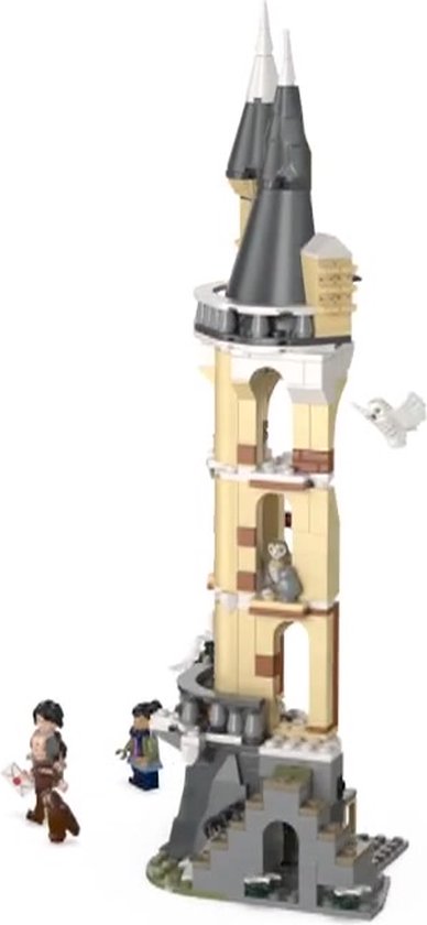 De set bevat een authentiek gedetailleerd LEGO® model van de toren waar de uilen van Zweinstein zijn gehuisvest, met vensterbanken waar uilen op kunnen zitten, een uilenstandbeeld, 1 van de 14 Zweinstein verzamelportretten en accessoires.