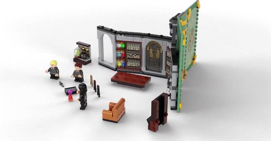 • Inclusief minifiguren van Draco Malfidus™, Simon Filister en professor Sneep™, een toverdrankenboek, een schoolbord, een leunstoel, een tafel, een geheime kamer en een kerkerachtergrond.