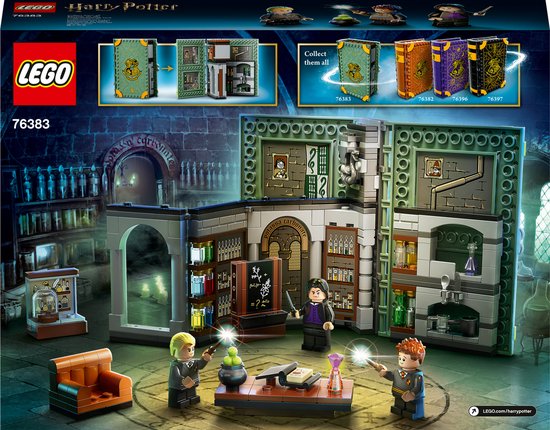 • LEGO® Harry Potter™ Zweinstein™ Moment: Toverdrankenles (76383) is een speelboek van LEGO stenen met binnenin een Toverdrankenlokaal op Zweinstein uit de Harry Potter films.