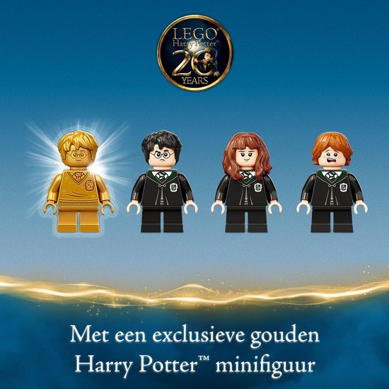 Jonge heksen en tovenaars kunnen samen met Harry Potter, Ron Wemel™ en Hermelien Griffel™ een krachtige wisseldrank brouwen. Laat de personages het drankje opdrinken, draai de hoofden van de minifiguren, geef ze ander haar en zie hoe ze in Vincent Korzel en Karel Kwast transformeren. Maar let op, want het kan ook misgaan. Zo is Hermelien ineens een kat! De set bevat nog meer verrassingen: een exclusieve gouden jubileumminifiguur van Harry Potter, 2 willekeurige tovenaarskaarttegels om te verzamelen en een geheime tunnel onder de wasbak. Als je deze set combineert met LEGO Harry Potter Zweinstein Geheime Kamer (76389), vormt de geheime tunnel de verbinding tussen de 2 ruimtes voor nog meer speelmogelijkheden. Dankzij dit magische, modulaire systeem kunnen kinderen hun eigen modelversie van Zweinstein creëren.