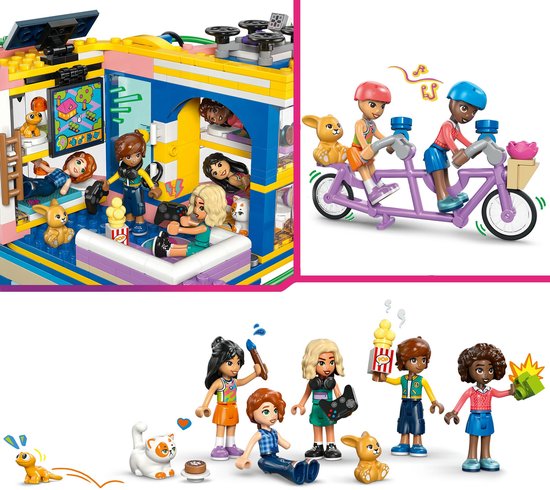 5 LEGO® FRIENDS PERSONAGES – dit rollenspelspeelgoed voor kinderen wordt geleverd met 5 minipoppetjes: Autumn, Nova, Aliya, Leo en Liann, plus de huisdieren Churro de kat, Honey het konijn en Popcorn de gekko