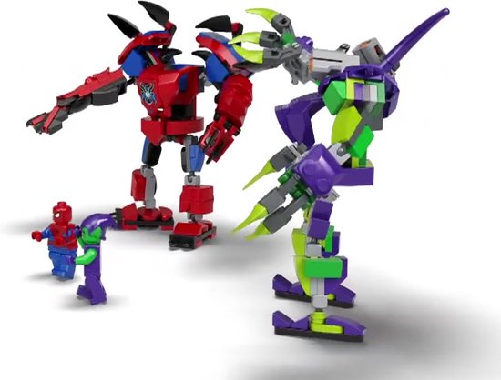De fantasierijke rollenspellen van Marvel fans worden naar een hoger niveau getild met 2 monstermecha met populaire minifiguren van superhelden uit de Marvel films. Kinderen zetten de minifiguur van Spider-Man in de cockpit van de Spidey monstermecha met zijn extra lange, flexibele armen en ingebouwde wapens. Dan plaatsen ze de minifiguur van Green Goblin in de cockpit van de monstermecha van de superschurk met zijn enorme grijpklauwen en schieters. De strijd tussen de monstermecha kan beginnen! Nadat alle actie achter de rug is, zien de 2 in allerlei standen verstelbare mecha er ook nog eens fantastisch uit in een kinderkamer.