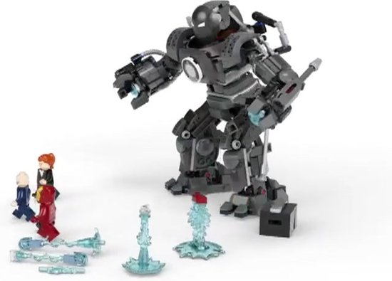 Dit spannende bouwspeelgoed is gebaseerd op klassieke scènes uit de eerste Iron Man film van Marvel Studios en prikkelt de fantasie van kinderen wanneer ze een van Marvels bekendste creaties namaken – de Iron Monger mecha. De boogreactor gloeit terwijl kinderen de mecha in positie brengen om de 6-noppenschieter op de rechterarm en de 3-noppenschieter op de linkerarm af te vuren. Kinderen kunnen Iron Mans powerblasters gebruiken om Pepper te redden en het mechamonster te verslaan.