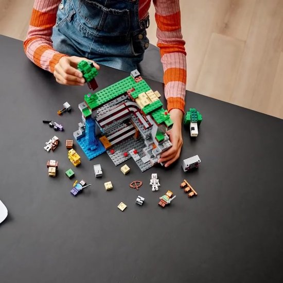 Kinderen die gek zijn van Minecraft, zullen deze versie van LEGO stenen van een spannende Minecraft omgeving fantastisch vinden. De set omvat een bouwwerk van 3 verdiepingen dat tot de nok toe is gevuld met fascinerende functies om te ontdekken, zoals een watervallift, inklapbare spoorbaan, verschuivende aardeblokken en natuurlijk ontploffingen. Kinderen gaan niet alleen op avontuur, want de populaire Minecraft personages Steve en Alex gaan graag met ze mee. Overal komen ze geliefde Minecraft figuren tegen, zoals skeletten, een geverfde kat, een gehoornd schaap en een fleurige loeibloem.