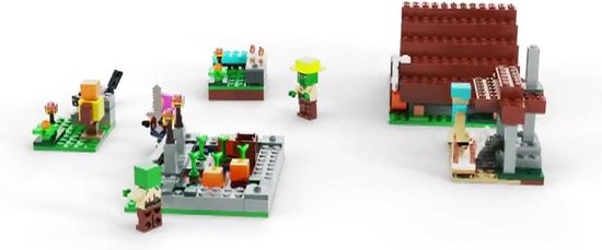 De set bevat LEGO Minecraft figuren van 2 zombie dorpelingen, een jager en een kat. De spelers moeten het verlaten dorp en de boerderij proberen te heroveren op de zombies en het in hun eigen stijl weer opbouwen, zodat ze klaar zijn voor hun volgende Minecraft avontuur.