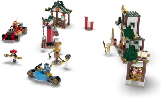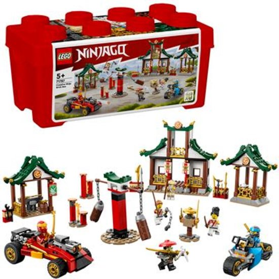 In de LEGO NINJAGO doos zitten onderdelen en stenen om een dojo met 3 gebouwen, een hindernisbaan met 3 interactieve gedeelten, een wapenkamer met wapens, een auto en een motor te bouwen. De speelset is inclusief 6 LEGO NINJAGO poppetjes: Nya, Kai, Meester Wu, vrouwelijke en mannelijke leerlingen en Bottenjager, allemaal bewapend. Dit is de eerste keer dat een NINJAGO set wordt geleverd in een opbergdoos om kinderen te inspireren hun verbeeldingskracht te gebruiken en hun eigen gebouwen en voertuigen te bouwen. Het is ook een ideale manier om snel en gemakkelijk op te ruimen.