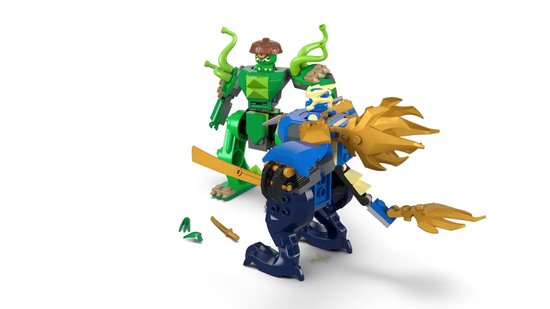 De drakenmecha van Jay heeft een cockpit die open kan met plek voor zijn minifiguur en een verstelbare staart, vleugels, armen, benen, lichaam en vingers. De mecha van het mutatiemonster heeft een cockpit voor zijn minifiguur en verstelbare tentakels, armen, benen en bovenlichaam. De set wordt ook geleverd met 4 verwisselbare wapens voor extra speelplezier: 2 zwaarden, een speer en een paar klauwen.