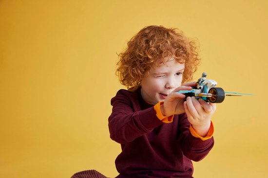 Met LEGO® NINJAGO® Zane's ijsmotor (71816) kunnen jongens en meisjes vanaf 7 jaar de razendsnelle actie uit seizoen 2 van de tv-serie NINJAGO Dragons Rising naspelen. Dit ninjaspeelgoed voor kinderen bevat een bouwbare NINJAGO motor met bewegende wielen, gouden messen en vering op de achterband. Wanneer kinderen op de band drukken, klappen de ijsmessen in de coole aanvalsmodus aan beide kanten uit.Dit indrukwekkende avonturenspeelgoed is inclusief een minifiguur van Zane die op de motor kan zitten. Zane is gekleed in zijn nieuwe toernooiuitrusting en heeft 2 katana's voor vele uren rollenspelplezier in de NINJAGO wereld.Het LEGO NINJAGO assortiment met bouwbaar actiespeelgoed omvat mecha, draken en tempels waarmee fans de actie kunnen naspelen. Elke ninjaspeelset kan in elkaar worden gezet met behulp van de LEGO Builder app, die jou en je kind begeleidt op een eenvoudig en intuïtief bouwavontuur.