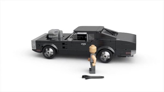 De set bestaat uit een Dodge Charger modelbouw auto boordevol authentieke details, zoals gegoten zilverkleurige velgen en een coole luchthapper. Inclusief een minifiguur van Dominic Toretto, die een moersleutel accessoire bij zich draagt.