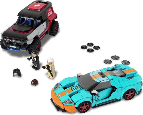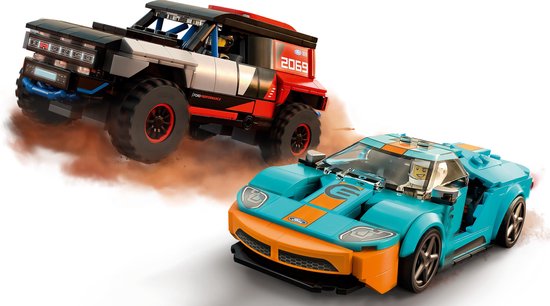 De voertuigen in deze speelset hebben een breed chassis, een cockpit met 2 stoelen en allerlei authentieke details. En met de 2 minifiguren van Ford coureurs met racepak en helm staan je heel wat races te wachten waarvan je hart sneller gaat kloppen!