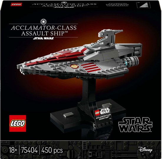Denk terug aan de dramatische Slag om Geonosis terwijl je het allereerste LEGO Star Wars™ bouwmodel van een Acclamator-Class Assault Ship (75404) bouwt. Dit displaymodel van een Star Wars ruimteschip bevat diverse authentieke details van het opvallende voertuig uit Star Wars: Attack of the Clones™. Geniet van wat tijd voor jezelf tijdens het complexe boeiende bouwproces en plaats je creatie op de standaard met naamplaatje.Deze maakt deel uit van de LEGO Star Wars ruimteschipcollectie op middelgrote schaal. Het is een leuke traktatie voor jezelf en een creatief Star Wars cadeau voor andere volwassen fans verzamelaars.Haal alles uit deze fantasierijke model met de LEGO Builder app. Met de app kun je tijdens het bouwen inzoomen een 3D-versie van je bouwmodel draaien je voortgang bijhouden en al je sets op één plek opslaan.