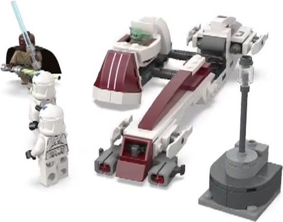 Lees volledige pagina →Beleef de flashback van de BARC Speeder ontsnapping uit seizoen 3 van Star Wars: The Mandalorian opnieuw met deze unieke LEGO® Star Wars™ set (75378). Deze geweldige cadeautip voor kinderen, fans en Star Wars verzamelaars vanaf 8 jaar bestaat uit een bouwbare LEGO speelgoedspeeder met zijspan. De speeder heeft een cockpit met ruimte voor een minifiguur en 2 noppenschieters en Grogu's zweefkinderwagen kan in het afneembare zijspan worden geklikt. Deze speel- en bouwset bevat ook een kleine bouwbare omgeving en 3 LEGO minifiguren: Kelleran Beq met blauwe en groene lichtzwaarden en 2 501st Clone Troopers, elk met blasters, plus een LEGO figuur van Grogu (door fans liefkozend 'Baby Yoda' genoemd) om creatief spel vol actie te inspireren. Dit fantasierijke avonturenbouwspeelgoed wordt geleverd met stapsgewijze instructies. Kinderen kunnen ook de LEGO Builder app downloaden, met digitale zoom- en draaifuncties om de bouwervaring nog leuker te maken.