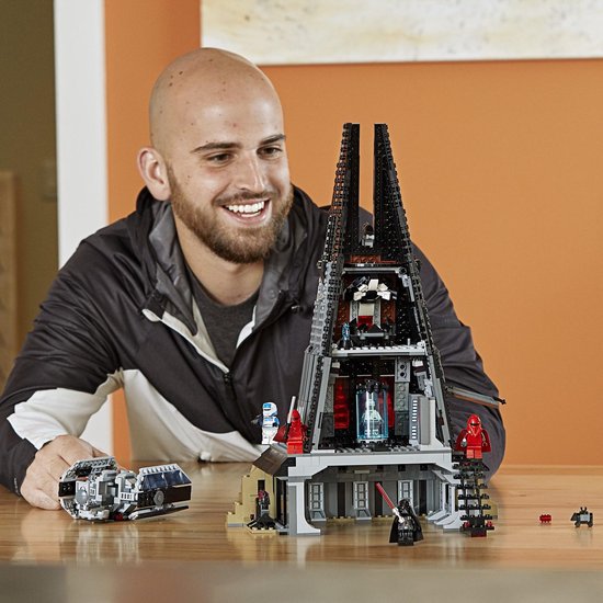 Lees volledige pagina →Vecht tegen Darth Vader in zijn versterkte kasteel! Ben jij er klaar voor om de Dark Lord of the Sith te ontmoeten in LEGO® Star Wars 75251 Darth Vaders kasteel? Ga de hangar in waar Vaders TIE Advanced Fighter staat en ontdek de bacta tank voordat je de meditatiekamer in sluipt. Springt Vader eruit om het tegen jou op te nemen met zijn rode lichtzwaard? Dat beslis jij! * De set omvat het kasteel van Darth Vader en een bouwbare versie van Vaders TIE Advanced Fighter. * Het kasteel heeft een ondergrondse hangar met muisdroid en aansluitpunt, een oud Sith heiligdom met holocron, rekken voor extra munitie, Sith relieken, geheime vakken met een verborgen lichtzwaardhandvat en een rood kyber kristal, plus ruimte voor Vaders TIE Advanced Fighter. * Het kasteel heeft ook een toegangsdeur aan de zijkant, een openende bacta tank, een haak voor Lord Vaders cape, een meditatiekamer met ruimte voor een minifiguur en holografische communicatie-eenheid, plus een ronde ontmoetingsruimte bovenop met een knoppenschietkanon ter verdediging van het kasteel. * De TIE Advanced Fighter heeft 2 knoppenschieters en een cockpit die open kan met ruimte voor een minifiguur. * Inclusief 5 minifiguren: Darth Vader, Darth Vader (bacta tank-versie), 2 Royal Guards en een Imperial Transport Pilot. * Wapens: Darth Vaders rode lichtzwaard, de blaster van de Imperial Transport Pilot en de Force pikes van de Royal Guards. * Darth Vaders kasteel is ca. 41cm hoog, 28cm breed en 23cm diep. * TIE Advanced Fighter is ca. 6cm hoog, 11cm breed en 9cm lang.