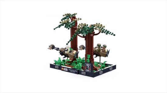 Lees volledige pagina →Leg de dynamiek vast van een spannende scène uit Star Wars: Return of the Jedi met de LEGO Star Wars Endor speederachtervolging diorama (75353). Er zijn 3 LEGO mini figuren (prinses Leia, Luke Skywalker en een Scout Trooper), 2 speederbikes met transparante elementen zodat je ze schuin kunt plaatsen alsof ze door de bossen van Endor vliegen, 2 bomen en varenelementen die nieuw zijn in mei 2023.