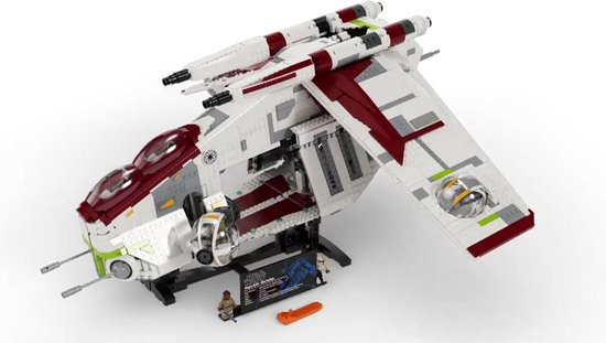 Lees volledige pagina →Ervaar de Slag om Geonosis uit Star Wars: The Clone Wars met dit bouw- en displaymodel van een Republic Gunship (75309) uit de Ultimate Collector Series. De authentieke kenmerken van een Low Altitude Assault Transport voertuig zijn op een prachtige manier nagemaakt met LEGO® stenen: de cockpits, de bolvormige, naar buiten draaiende geschutskoepels, 2 kanonnen bovenop, superlange vleugels, zijkanten die open kunnen, een openend luik aan de achterkant en een gedetailleerd interieur.