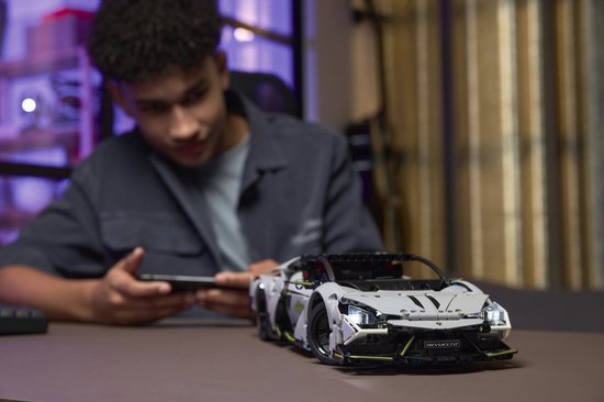 Inspireer kinderen om een gedetailleerd model van de prachtige Lamborghini Revuelto supersportwagen te bouwen met dit LEGO® Technic STEM-bouwspeelgoed (42214) voor jongens en meisjes vanaf 10 jaar. Dit model heeft functies die zijn geïnspireerd op de echte auto en is voorzien van een motorkap en coole glow-in-the-dark details op de koplampen. Lamborghini fans zullen hem geweldig vinden! Na het bouwen kunnen kinderen de CONTROL+ app gebruiken om de auto te besturen, de koplampen te bedienen en live feedback te krijgen in de app terwijl ze hun rijvaardigheden perfectioneren.Deze set is een geweldig cadeau voor kinderen die van op afstand bestuurbare auto's houden. Het model kan worden gemaakt met behulp van de LEGO Builder app, waarmee bouwers kunnen inzoomen, modellen in 3D kunnen draaien en hun voortgang kunnen bijhouden.De realistische bewegingen en mechanismen van LEGO Technic sets laten jonge LEGO bouwers kennismaken met de wereld van techniek. De set bevat 1135 onderdelen.