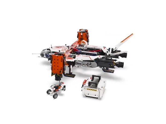 De set zit boordevol coole functies, waaronder tandwielen die de motoren laten draaien, het landingsgestel in- en uitklappen en de klauw laten zakken om de vrachtcapsule met een miniruimterover op te pakken. Er zit zelfs een handvat bovenop, zodat jonge ruimtefans dit futuristische ruimteschip tijdens het spelen door de kamer kunnen laten vliegen.