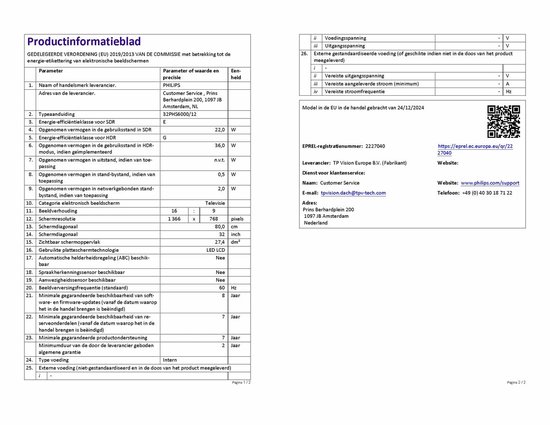 - Schermdiagonaal: 32 inch (81 cm)