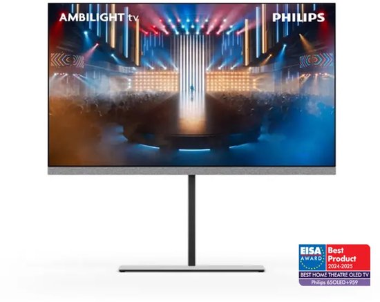 Lees volledige pagina →De Philips 65OLED959/12 vertegenwoordigt het absolute summum van wat Philips op televisiegebied te bieden heeft. Dit is geen gewone televisie, maar een totaalbeleving: een fenomenaal 65-inch OLED-scherm gecombineerd met een geïntegreerd Bowers & Wilkins 5.1.2 geluidssysteem, vierzijdig Ambilight Plus, de krachtige P5 AI Dual Engine en Google TV. Voor wie het allerbeste wil en geen concessies wil doen aan beeld of geluid.