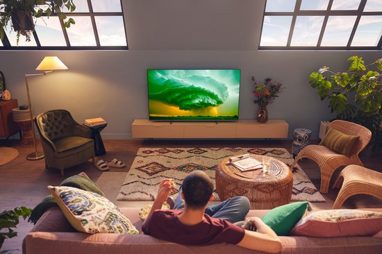 De drie HDMI 2.1-aansluitingen ondersteunen Variable Refresh Rate (VRR) voor scheurvrij en vloeiend gamen met next-gen consoles. De automatische activering van de lage-latency modus zodra u een console aansluit zorgt voor een directe en responsieve spelervaring. HDMI eARC maakt het mogelijk om hoogwaardige audio door te sturen naar een externe soundbar of AV-receiver.