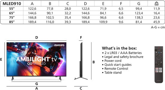 Lees volledige pagina →De Philips 75MLED910/12 is een topklasse televisie uit 2025 die premium beeldkwaliteit combineert met de nieuwste QD-MiniLED backlighttechnologie. Op het enorme 75-inch scherm (191 cm) worden beelden weergegeven met ongekende helderheid, diepte en kleurnauwkeurigheid. Of u nu films streamt, live sport kijkt of games speelt, deze TV levert altijd een meeslepende ervaring die de concurrentie ver achter zich laat.
